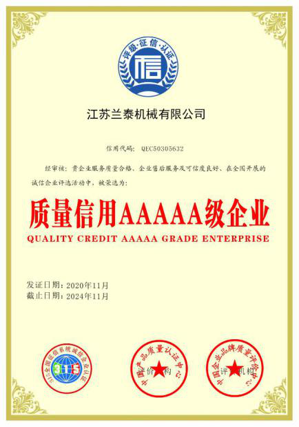 2020-Lantai Company won the honorary title of “Quality Credit AAAAA Level Enterprise”.
