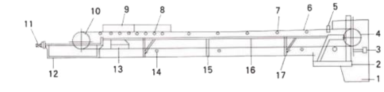 13.Nonloaded cleanser 14. Return roller 15. I-shaped outrigger