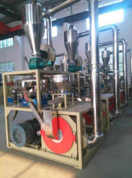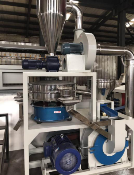 (1) Knife disc pulverizer is generally suitable for PVC and other hard and brittle materials. Because the hard and brittle material is subjected to shear force between the rotary blades and stationary blades of the knife disc pulverizer, it can be easily cut into powder.